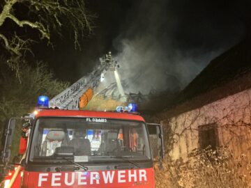 Die Feuerwehr Denzlingen wurde am 03.10.2025 kurz nach Mitternacht zur Unterstützung der Feuerwehr Glottertal bei einem Gebäudebrand mit der Drehleiter alarmiert. Nur wenige Minuten später wurde in Glottertal ein zweiter